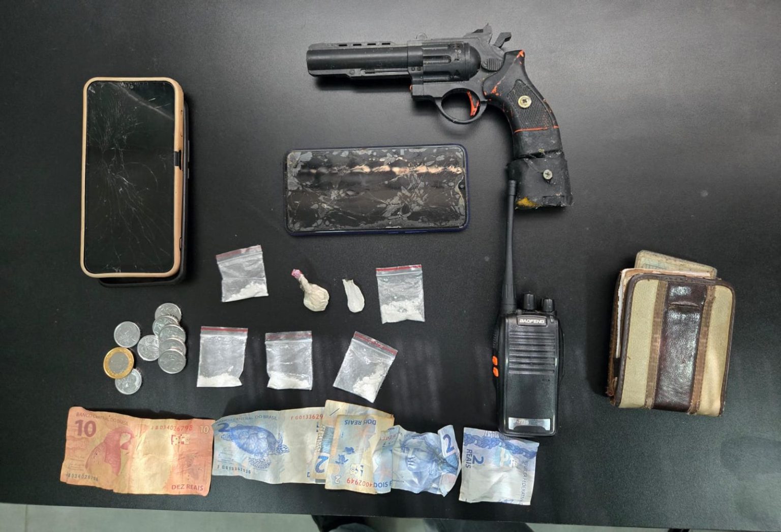 Diante da gravidade das informações e da existência de denúncias anteriores relacionadas ao mesmo endereço, as equipes policiais se deslocaram até o local, onde realizaram diligências que confirmaram as suspeitas. Durante a ação, foram encontradas diversas porções de substância análoga à cocaína, já fracionadas e prontas para comercialização, além de uma quantidade maior da mesma droga, dinheiro em espécie e objetos comumente utilizados na atividade de tráfico, como rádio comunicador e simulacro de arma de fogo.